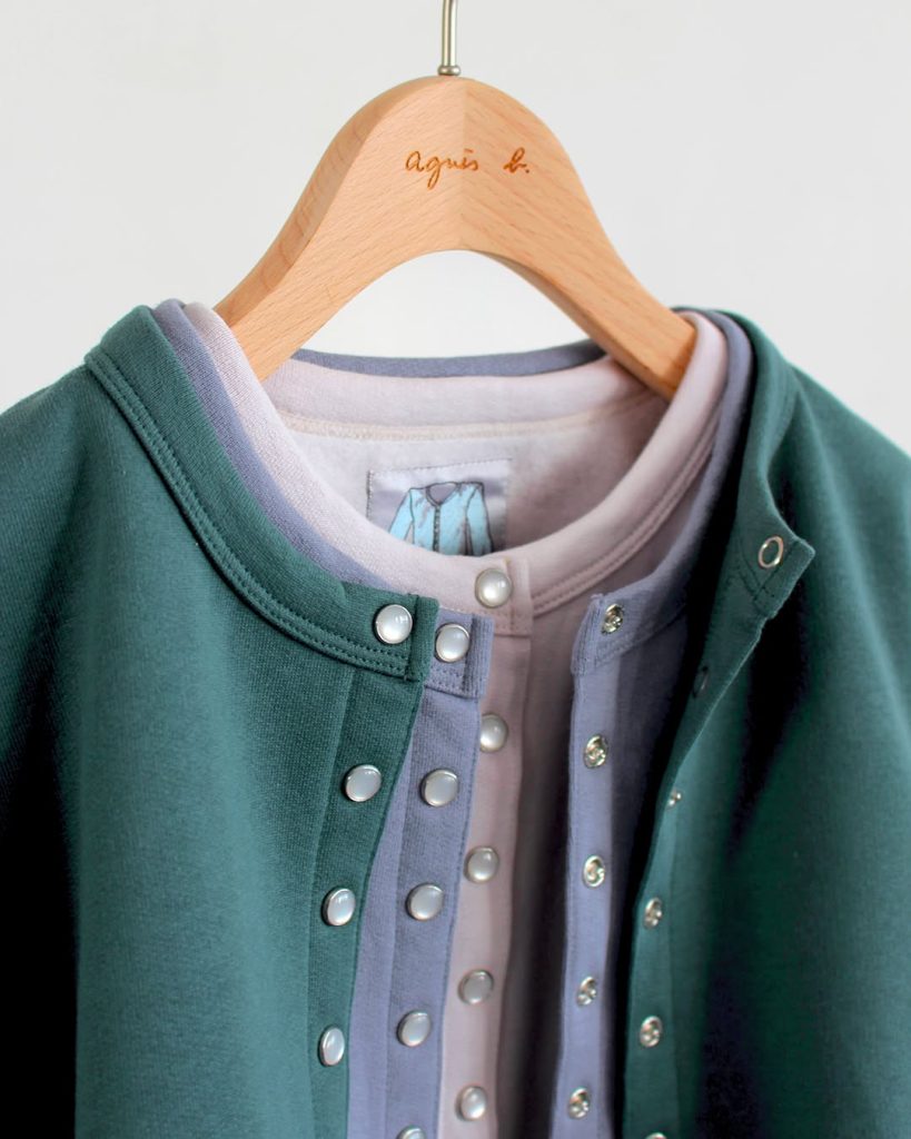 Agnès:我覺得是snap cardigan,我已經推出46年了。任何尺碼都有,從三個月嬰兒到男士大尺碼,是agnès b.最受歡迎的單品。