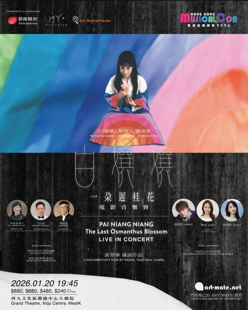 《白孃孃:一朶遲桂花》的播映一直持續,來到2026年1月,將會在西九戲曲中心以「影像放映 X 現場演奏」的嶄新形式,重啟這部香港首部華語音樂劇的傳奇篇章。黃翠華表示,外國一直流行這種Musical in Concert的音樂會。「很多人問何時聽到音樂、何時能夠復活音樂劇,我自問沒能力,但這個形式外國流行,潘姐姐也一直喜歡。」今次邀得胡鴻鈞、糖妹、Ashley林愷鈴,以及中文大學合唱團,跨代以聲音導航,加上杜自持編曲,高世章同時擔任顧問,多位幕前幕後高手落力參與。