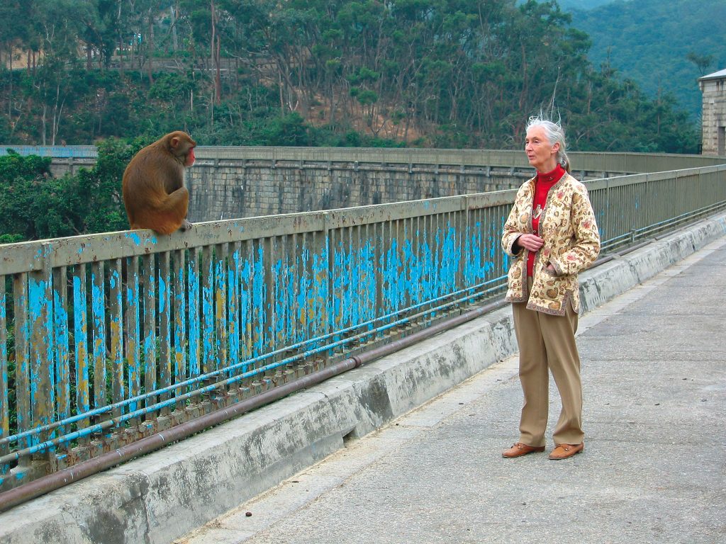 Jane Goodall在十一月蒞臨本港出席她的「Roots&Shoots」活動,到過香港大學及部分小學推廣保護地球生態的教育工作。期間,她也親到本港大名鼎鼎的馬騮山。香港向來地小物奇,Jane Goodall對於城市可以跟小森林如此靠近感到非常詫異,同時,她認為香港人可以和猿這樣親近是一種幸福。