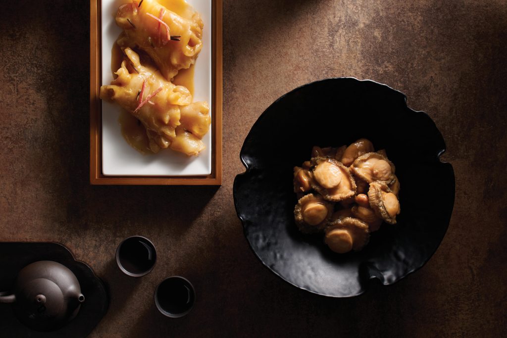 「花雕酒醉蝦」以每日新鮮到貨的鮮蝦入饌,浸泡過花雕酒後,鮮甜彈牙的蝦肉酒香縈迴,令人垂涎。經典中式美饌還有鮑汁燜海參鵝掌、蒸本地綠洲龍躉斑球,以及燒味區的片皮鴨、燒乳鴿和香烤叉燒等,滿載風味。