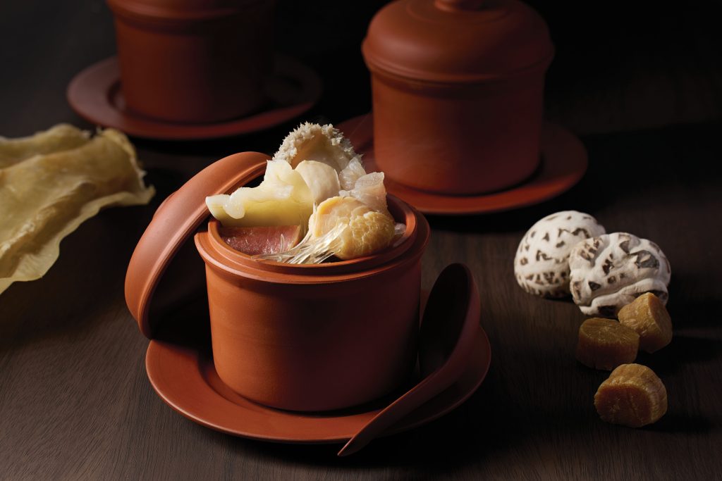 JW咖啡室的名貴中式海味珍饈,一直是餐廳招牌,廚藝團隊全新推出「古法燜南非鮑魚滑雞」,以老雞、瘦肉、金華火腿和乾瑤柱熬煮成上湯,再將鮑魚和滑雞燜煮至軟嫩彈牙,風味醇厚;「野米濃湯燴花膠火腿」採用高纖高蛋白質的野米,淡淡的木質芳香,與老雞和金華火腿一起熬成香濃醬汁;「燴澳洲花膠」厚身飽滿,柔滑富膠質,絕對是滋補養顏的佳餚!