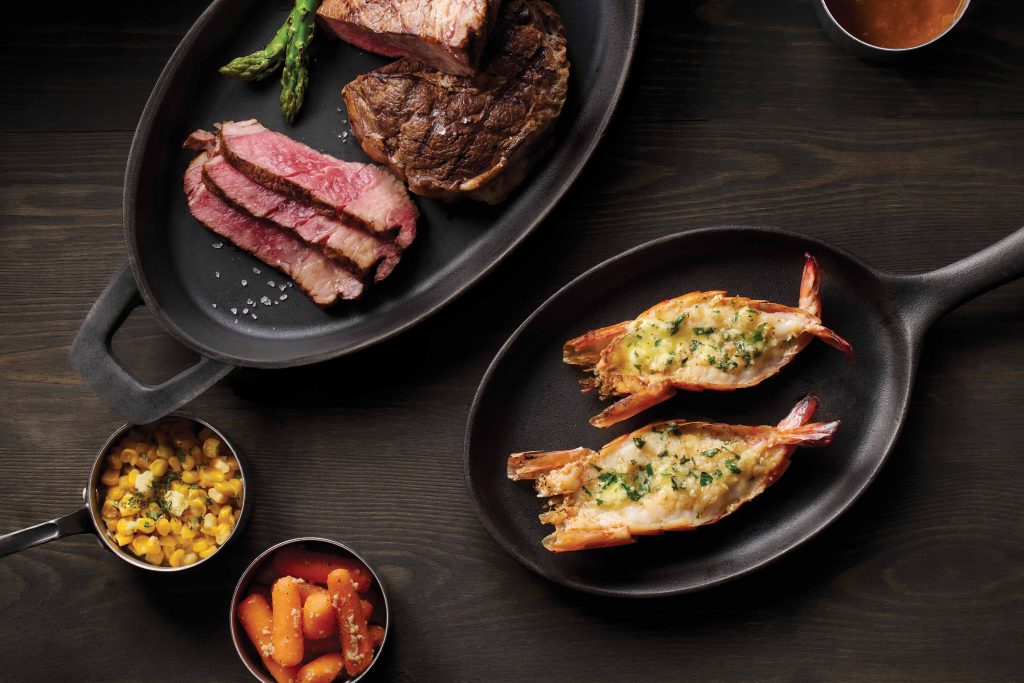 自助餐必吃之選,當然繼續有冰凍海產包括新鮮龍蝦、蟹鉗、鱈場蟹腳、麵包蟹和鮮蝦等;即煮麵檔演繹地道風情,多款特色配料皆為自家製作,如鮮蝦雲吞、燴牛腩及牛筋等,自由配搭出專屬口味的港式車仔麵;即席切肉專櫃中,有焦香誘人的「香煎澳洲和牛扒」、有肉質嫩滑的「香草焗三文魚」,有焗製後鎖住肉汁味道豐富的「香草烤羊架」。廚師更精心挑選爽嫩彈牙的黑虎蝦,炮製出新菜式法式香草牛油焗蝦,香氣四溢。
