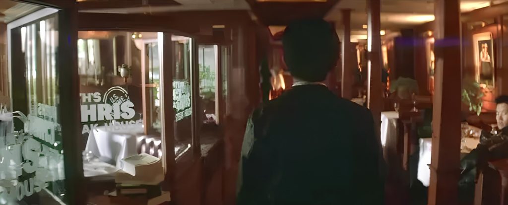 戲中講述,梁朝偉飾演的陳永仁到扒房與沈澄(陳道明 飾)之弟沈亮(黃志忠 飾)會面,期間接到韓琛(曾志偉 飾)的電話指令,要用煙灰缸擊向對方的頭,然後黎明飾演楊Sir將他們帶回警局。這一幕正是尖沙咀中心分店,美式獨特裝潢風格定格於香港光影歷史當中。